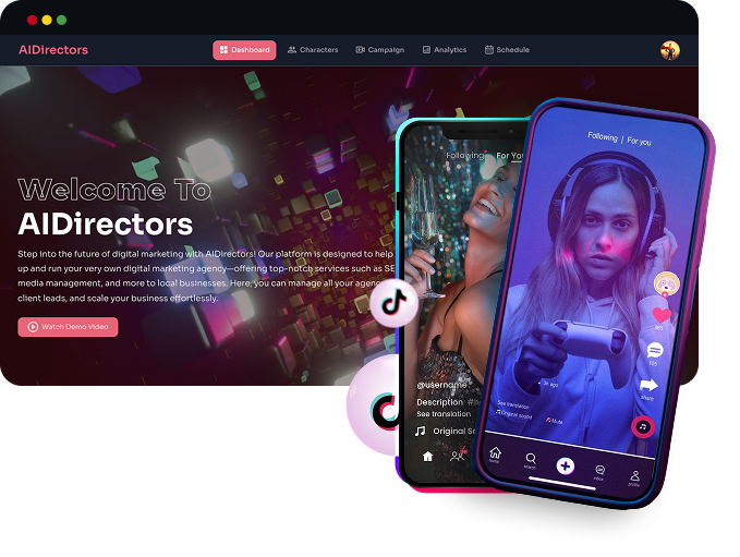 Unlock the full power of AIDirectors with unlimited video ad campaigns, unlimited active projects, unlimited character creations, and unlimited script variations per campaign. Scale without restrictions using advanced avatar libraries with 100+ premium characters, multi-character ad support for complex storylines, 50+ advanced tone and style options, priority video rendering up to 3× faster, built-in A/B testing, deep analytics, AI performance predictions, and bulk scheduling of up to 200 videos at once. Plus, get priority support with a dedicated account manager and exclusive access to the BONUS Advanced Video Ad Mastery Training Program.