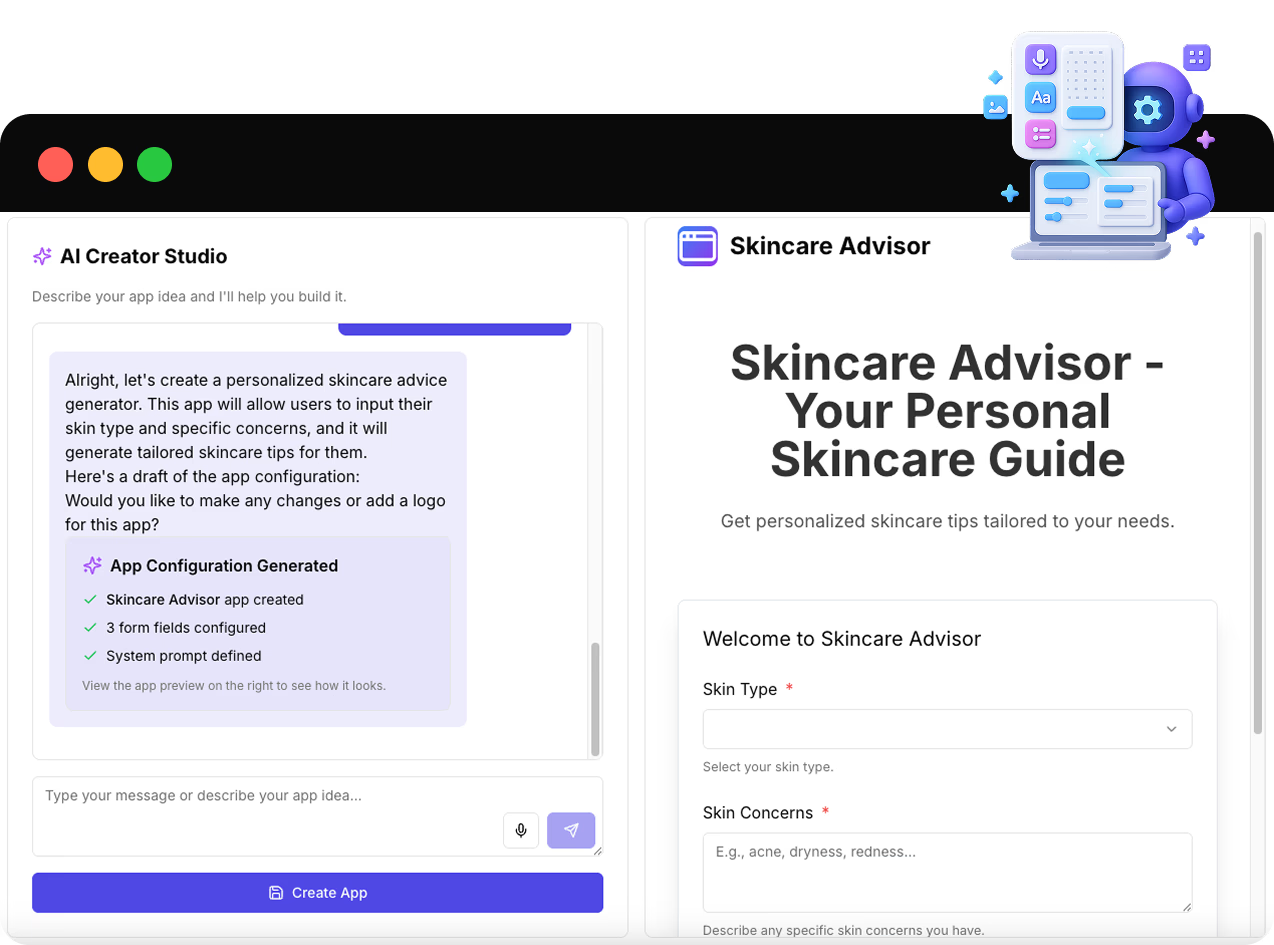 Think of it like this: You’re having a conversation with a smart assistant (like a chatbot), and you tell it what kind of app you want. For example, maybe you want an app that shows people what they would look like with a new hairstyle, or an app that gives customized workout plans. You just describe your idea, and AIWrappers does the heavy lifting — it creates the app for you, step by step.