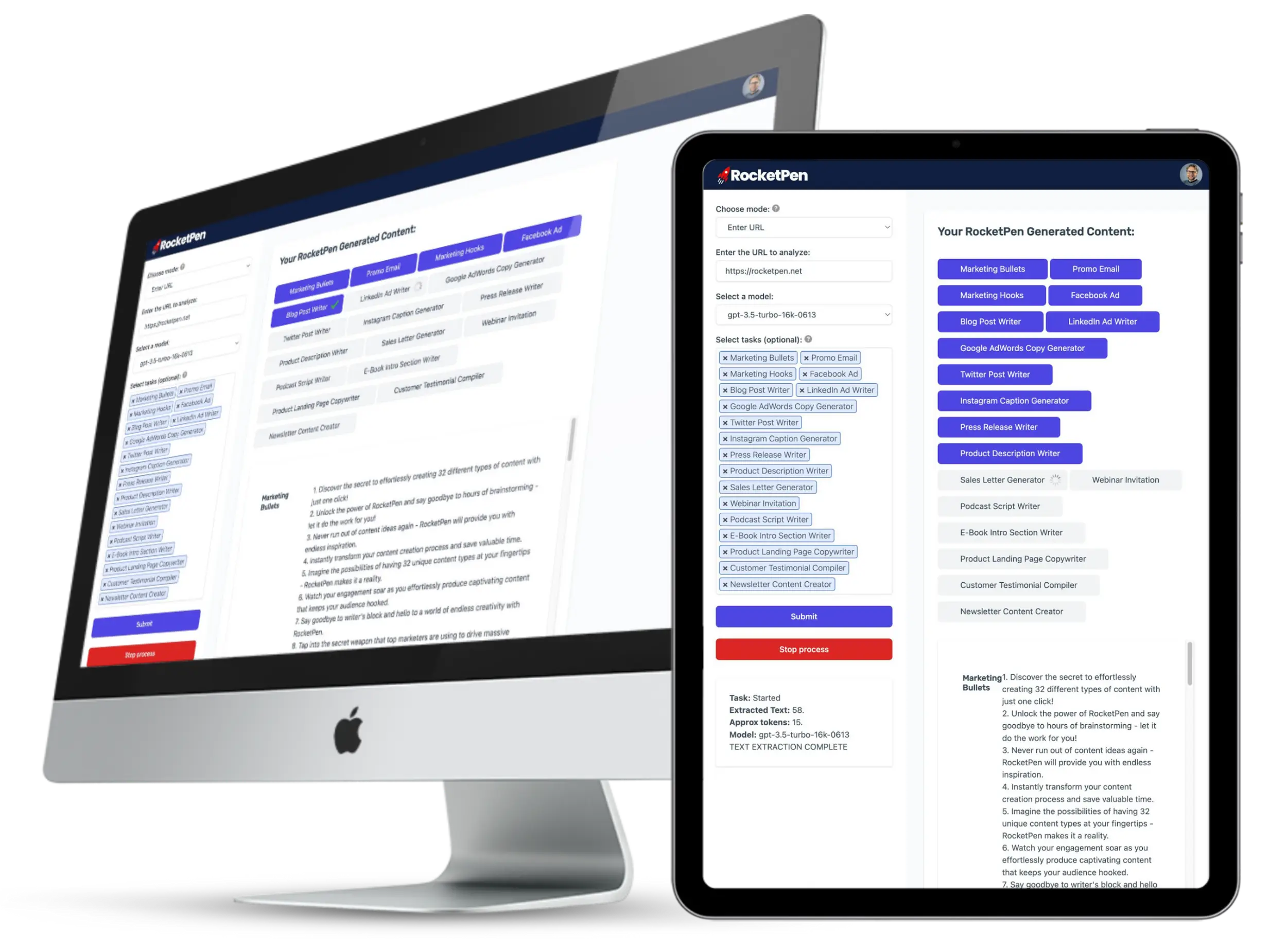 Say goodbye to manual content creation! RocketPen's advanced AI technology allows you to enter a single URL and instantly create a variety of marketing materials. Whether it's blog posts, social media captions, or email newsletters, RocketPen has got you covered.