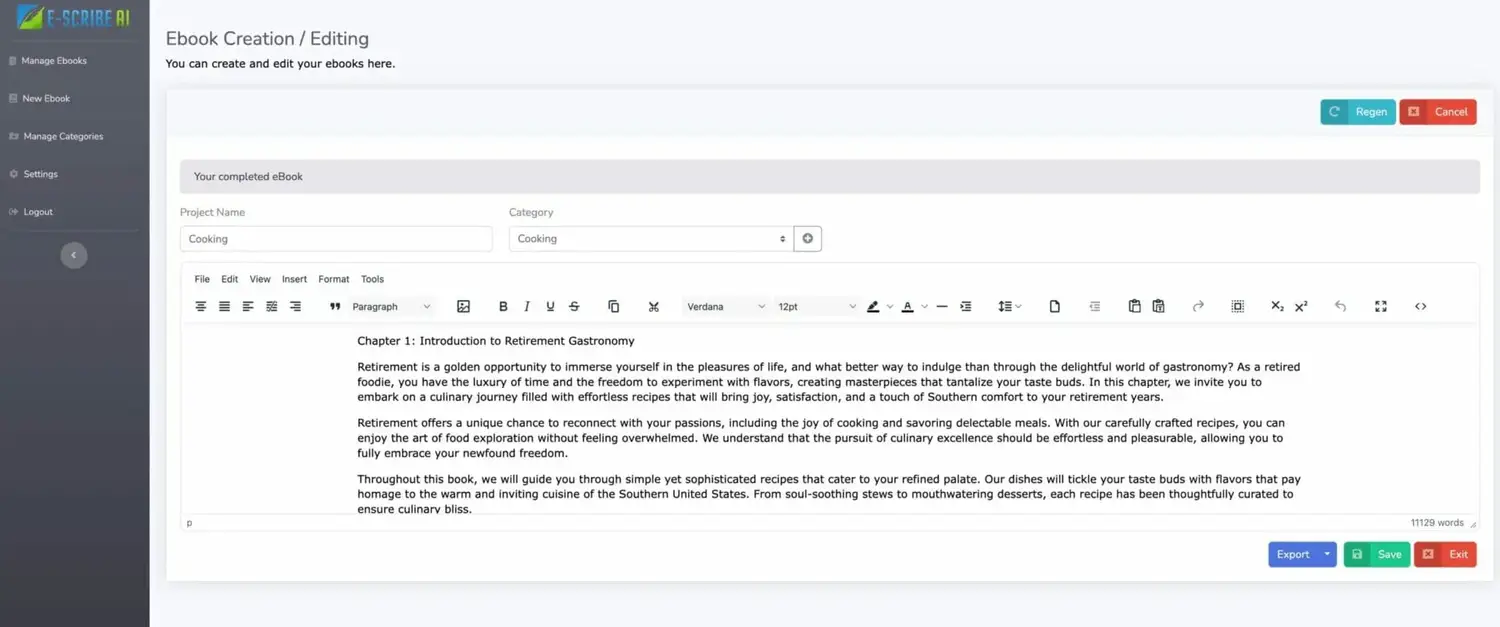 Your eBook is complete and ready to download. BUT you can format it directly in the software. Let's say you want to change the font, add images or links in you can do that right here. In fact you can add anything you wish. Then you can download your eBook as a PDF, text or doc file. The eBook is also stored in the software and you can go back and edit at any time. You can even regenerate the whole book if you wish.