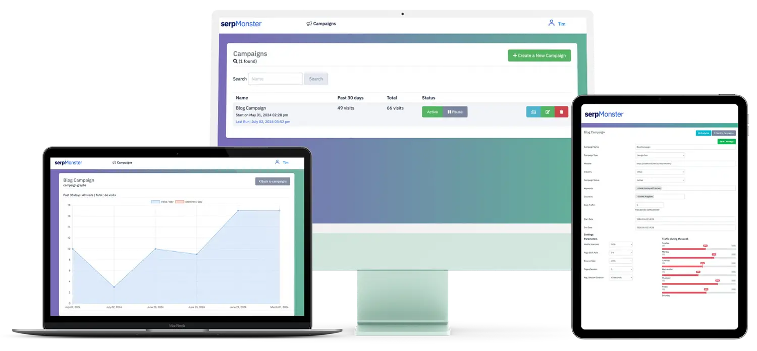 Here’s how it works: Simply create your Quillio review pages, choose the keywords you want to rank for, and let SerpMonster do the rest. It will search for your specified keywords, find your page, and visit your website, boosting your CTR and lowering your bounce rate. This results in improved rankings which in turn drive more organic traffic to your site, delivering real, measurable results. Plus, you can track your progress along the way.