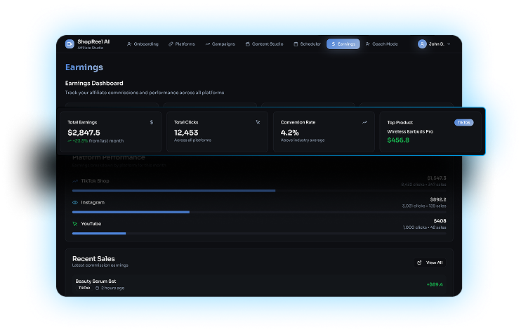Your Complete TikTok Shop Affiliate System In A Simple Dashboard!