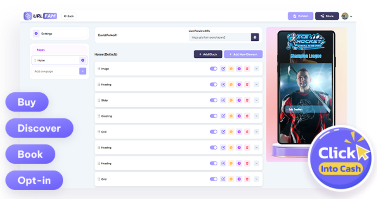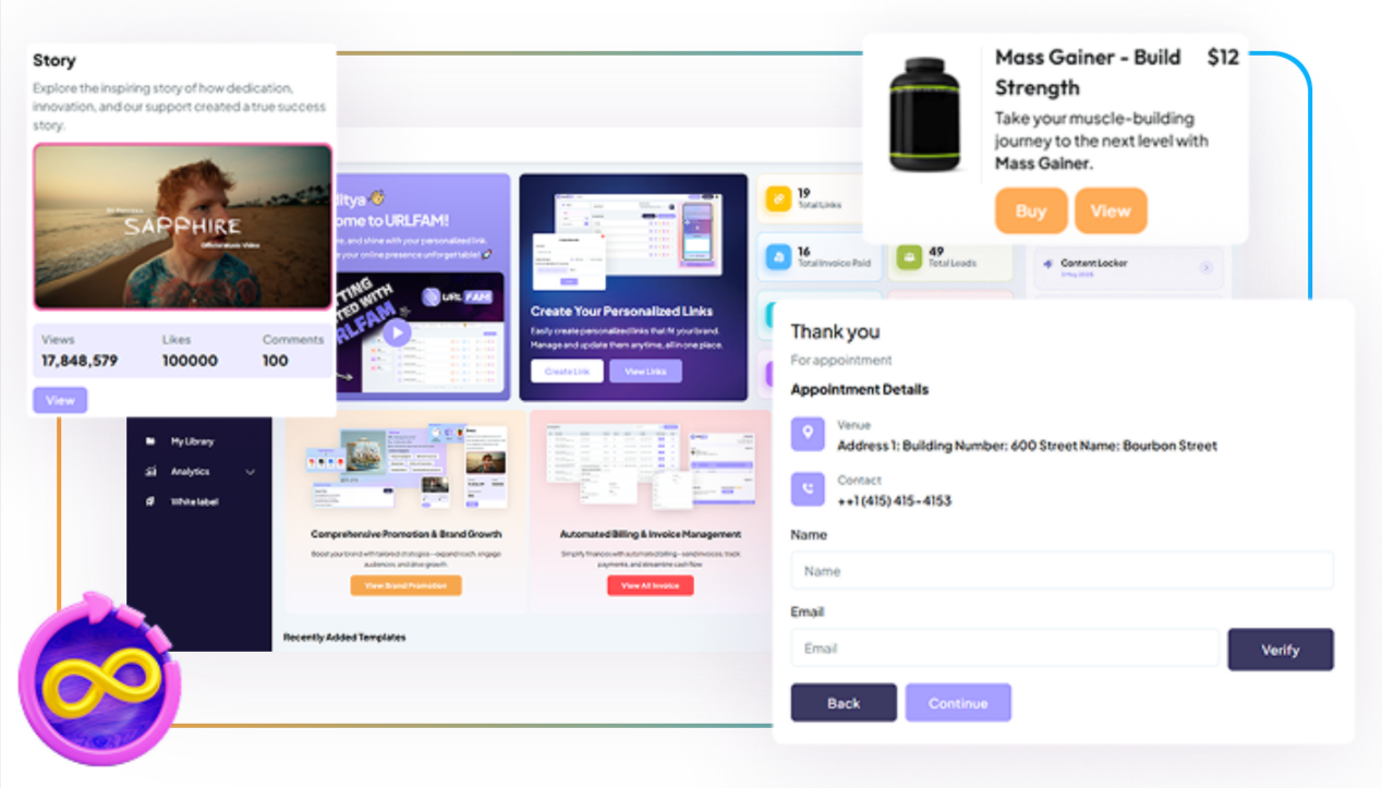 Bio links used to just show links. URLFAM sells, books, collects, and converts — making it the world’s first One-Link Creation Suite you’ll ever need.