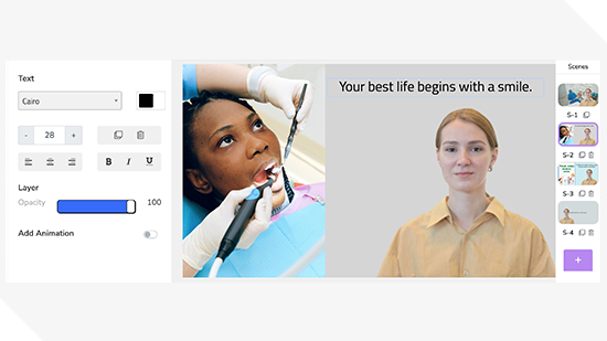 There’s 26 stunning human avatars to choose from or you can even upload and fully customize your own to make your video pop!