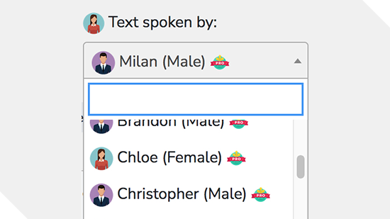 Up to 82 different languages and 600 male/female voice accents to choose from.